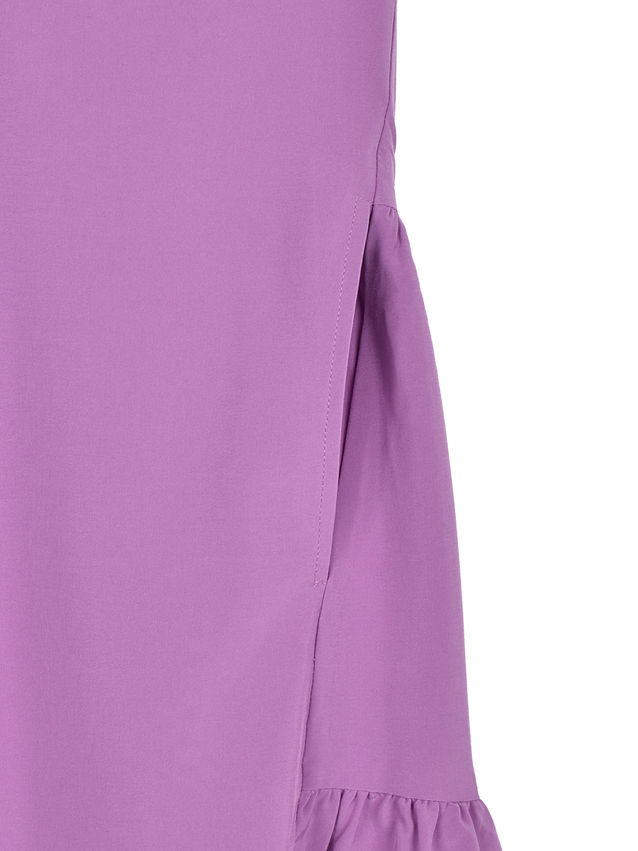 広がりを抑えたティアードシルエットでお作りしました。アーム部分もゆったりめで作成して風が通り着心地良く着用出来ます。肉感が目立ちにくく、スッキリとしたシルエットに仕上がりました。全体のシルエットも、裾が広がり過ぎないので年齢問わずきれいめに着用して頂けるシルエットです。「エレガントさ」や「フェミニンさ」のある、女性らしいシルエットです。縦ラインを強調することで脚長効果なども期待できます。