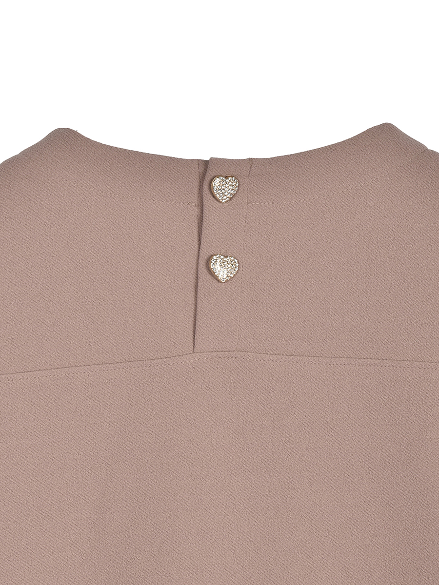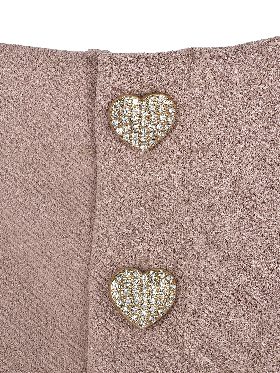 身頃はシンプルにすっきりと、衿ぐりは見返し始末のラウンドラインで上品できちんと感のあるように仕上げました。後ろ明きはヨーク切替えまで打合せの明きを作りました。ハート型のキラキラビジューの釦は&LOVEらしいキュートなおしゃれポイントです。釦は本体に合わせてカラーを変えています。