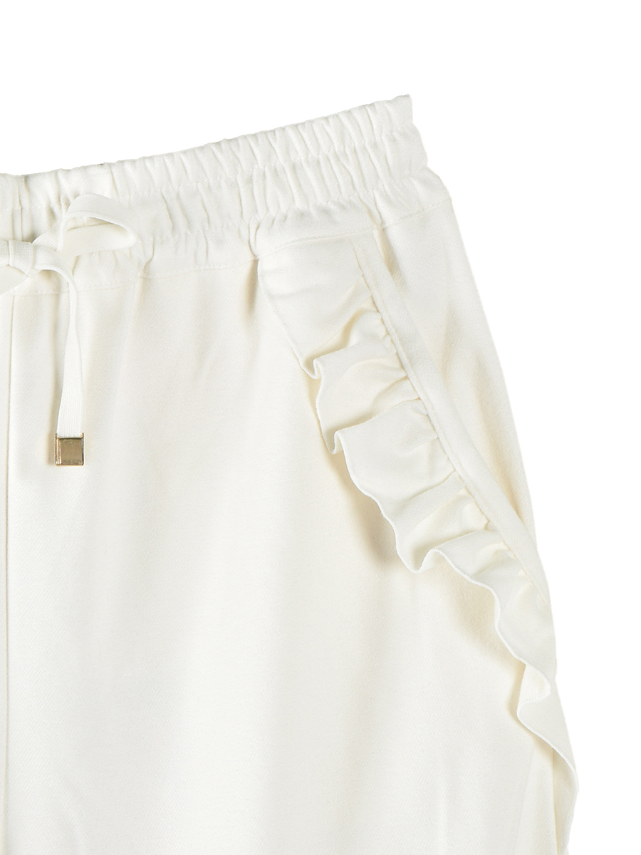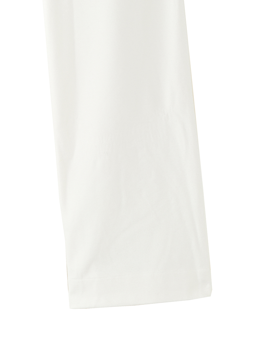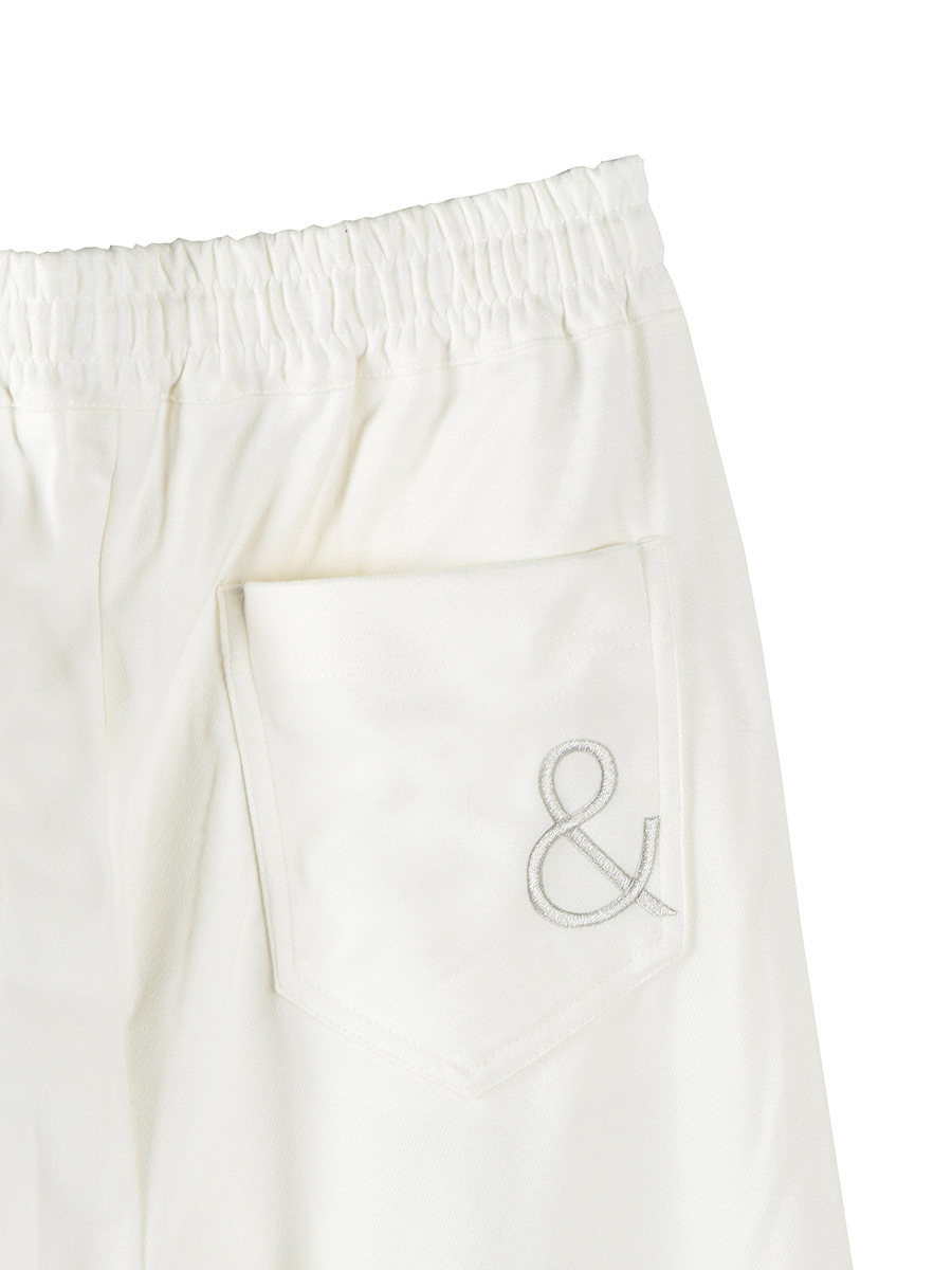 暖かみのある繊細で肌触りの良いストレッチフラノ素材です。裏起毛なので暖かくご着用いただけます。 前脇ポケット口はギャザーフリルで飾り付けられています。後ろのポケットには&の刺繍を微配色で入れています。 ウエストベルトにはヒモを通して調節可能にしています。ベルトにステッチを入れ生地とゴムを止め付けているので洗濯してもゴムが中でひっくり返らずに保てます。紐先には金属チップを付けて大人っぽい仕上がりにしています。 裾折り返し巾を広くしてしっかりと存在感のある裾に仕上げています。ゆったりと楽に着られるサイズ感です。
