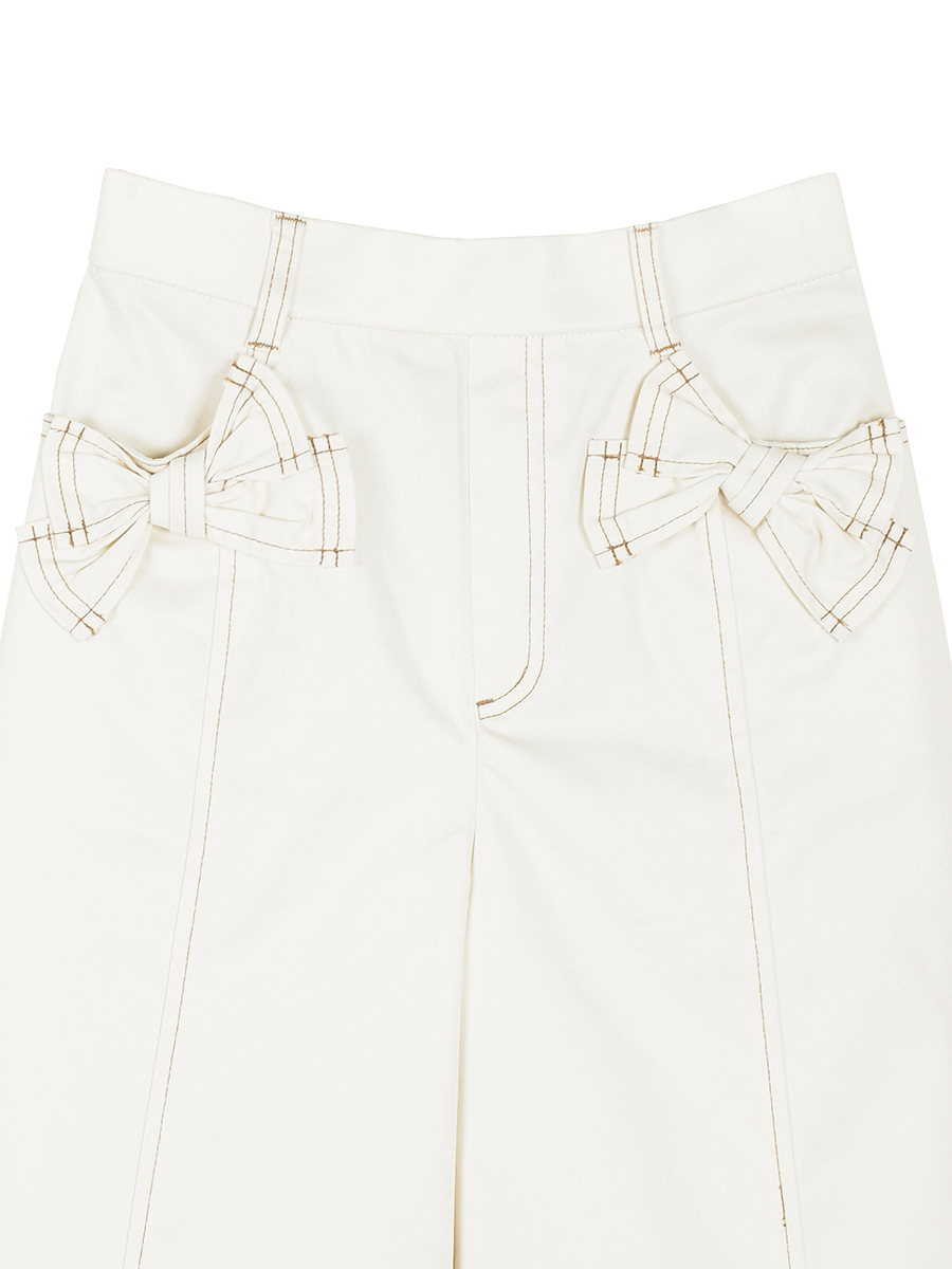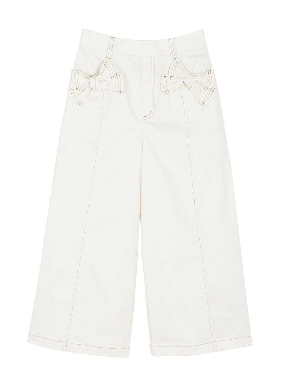 甘カジュアルなポケットリボンワイドパンツ