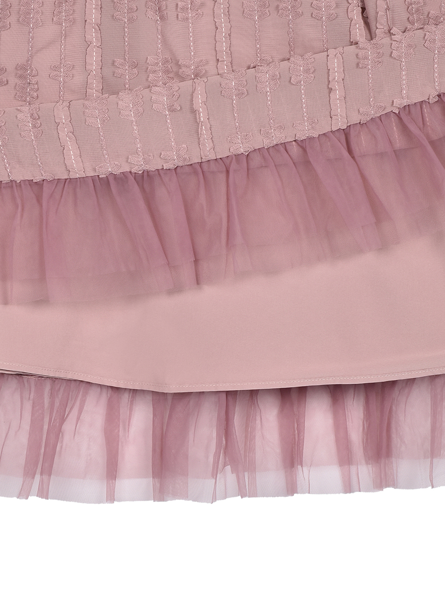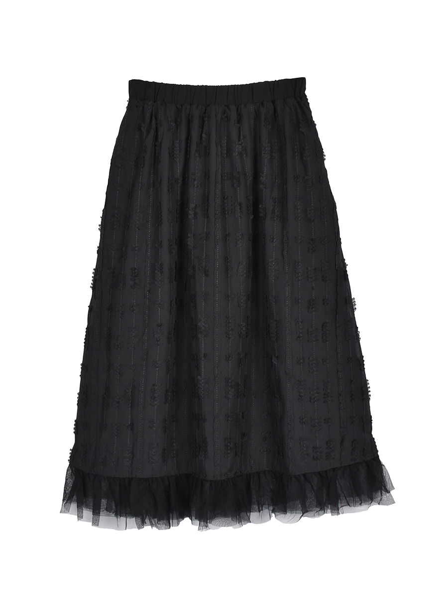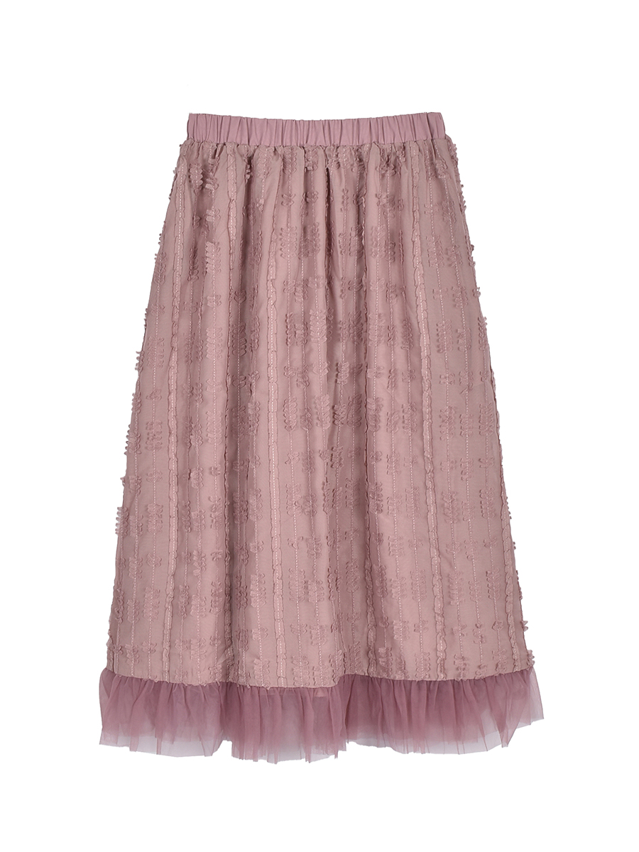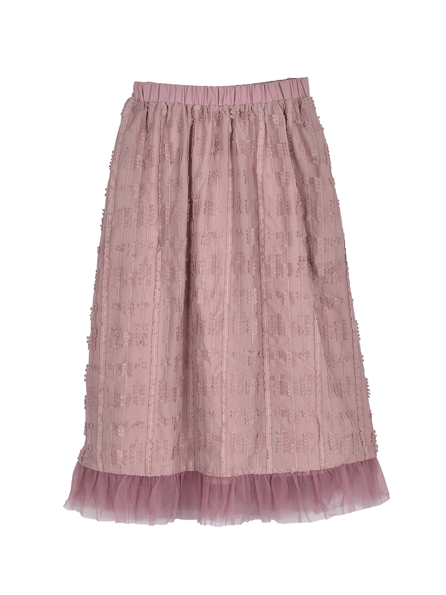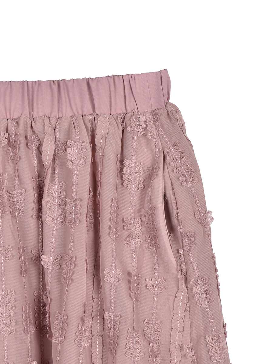 チュールモチーフ刺繍のフェミニンリボンスカート