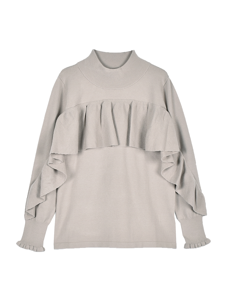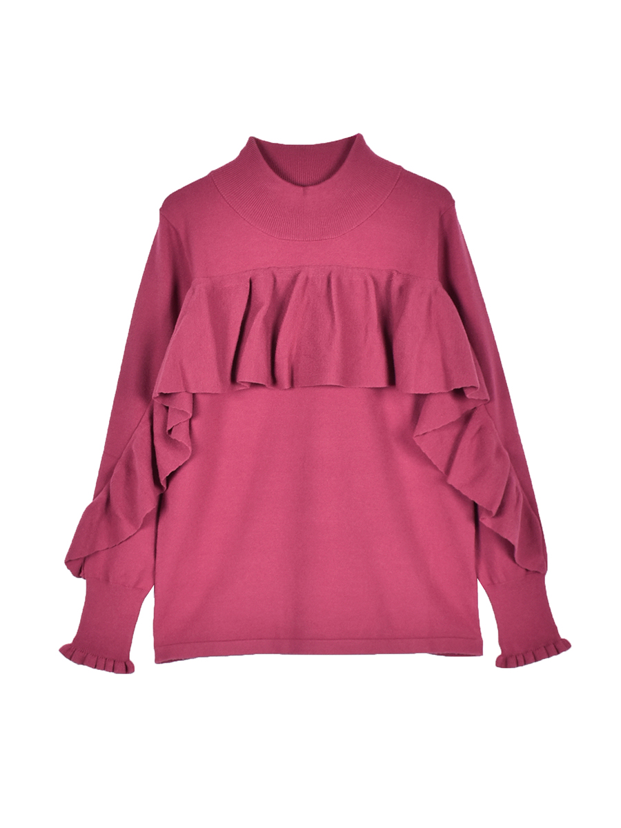 ジャストフィットな細身寄りのプルオーバーでハイネックが女性らしさを演出します。
